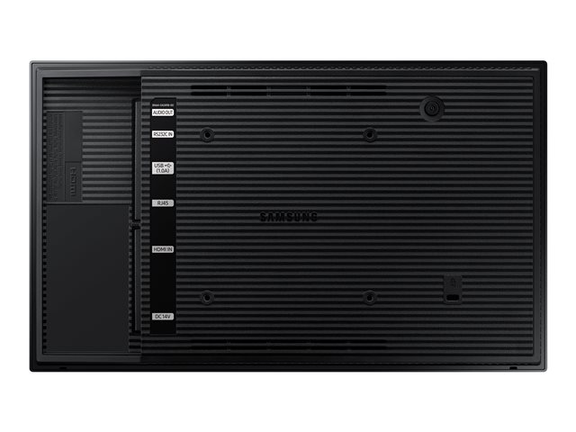 QB13R har en kompakt och slimmad design som gör den lätt att använda på platser med begränsat utrymme. Tack vare den platta baksidan kan skärmen monteras tätt mot väggen eller användas fristående, samtidigt som den erbjuder smidig anslutning och hantering av innehåll och inställningar.