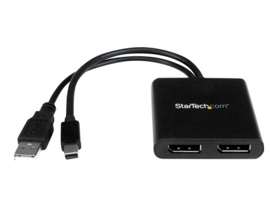 Med denna MST-hubb kan du ansluta två DisplayPort-skärmar till din Mini DisplayPort-dator. MST fungerar på alla Windows -enheter som stöder DisplayPort 1.2, som till exempel modeller av Lenovo Think Pad och Microsoft Surface . Vid anslutning till tidigare versioner av DisplayPort, som till exempel DP 1.1, fungerar MST-hubben som en videosplitter. MST-hubben är USB-driven så att det enda du behöver för att använda hubben är din dator.