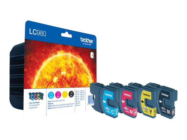 Brother LC980VALBPDR - 4-pack - svart, gul, cyan, magenta - original - blister - bläckpatron - för Brother DCP-145, 163, 165, 195, 365, 373, 375, 377, MFC-250, 255, 290, 295, 297 LC980VALBPDR