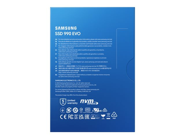 Samsung 990 EVO MZ-V9E2T0BW - SSD - krypterat - 2 TB - inbyggd - M.2 2280 - PCIe 5.0 x2 (NVMe) - 256 bitars AES - TCG Opal Encryption 2.0 MZ-V9E2T0BW