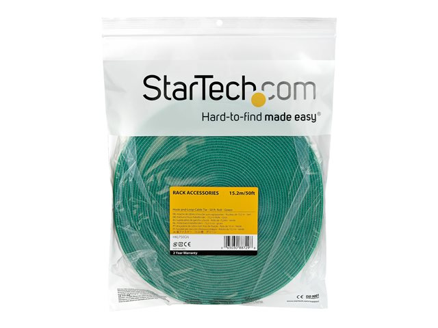 StarTech.com 50ft Hook and Loop Roll, Cut-to-Size Reusable Cable Ties, Bulk Industrial Wire Fastener Tape / Adjustable Fabric Wraps Green / Resuable Self Gripping Cable Management Straps - Adjustable Loop Ties (HKLP50GN) - Kardborrefäste - 15.24 m - grön - för P/N: HKLP50, HKLP50BL, HKLP50RD, HKLP50YW