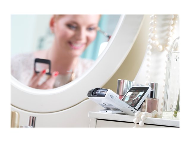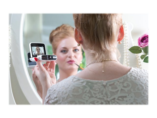 Den inbyggda ställningen är perfekt för inspelning handsfree, klarar många olika vinklar upp till 60° och minskar behovet av stativ. Ställningen kan till exempel användas för kreativ inspelning av makeup-kursen eller de olika stegen på danskursen.