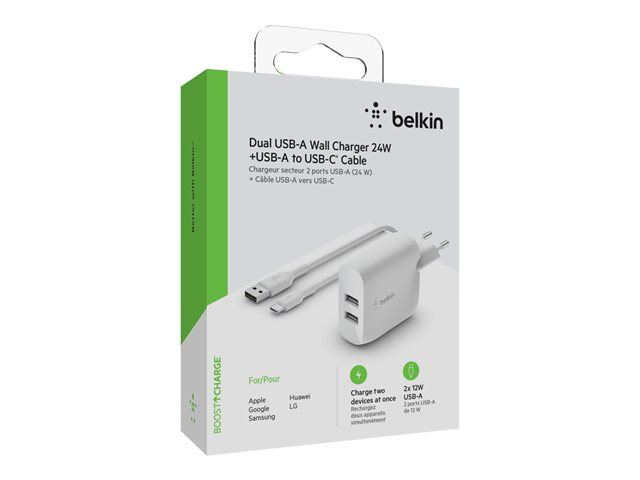 Belkin BoostCharge - Strömadapter - 24 Watt - 2 utdatakontakter (USB) - vit