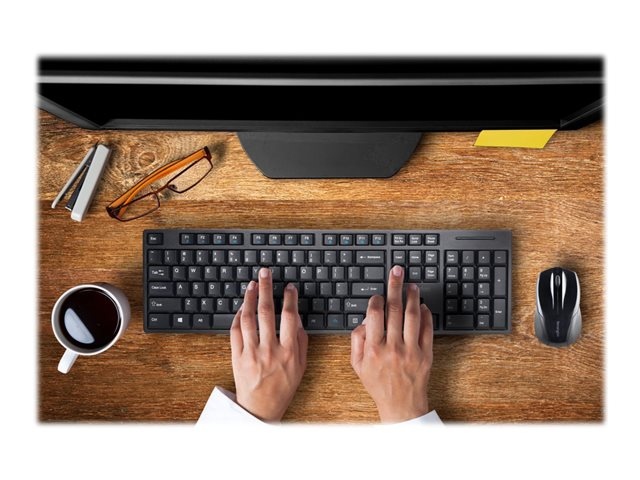 Kensington Pro Fit Low-Profile Desktop Set - Sats med tangentbord och mus - trådlös - 2.4 GHz - fransk - svart K75230FR