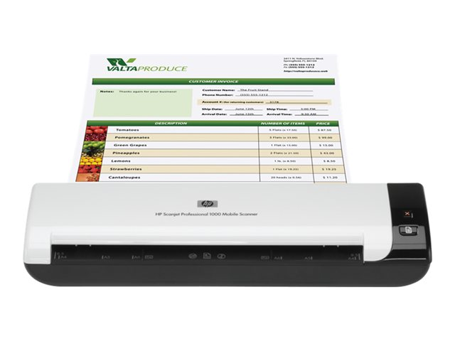 HP ScanJet 1000 Professional Mobile Scanner - Arkmatad skanner - 216 x 864 mm - 600 dpi x 600 dpi - upp till 100 scanningar per dag - USB 2.0 L2722A#B19