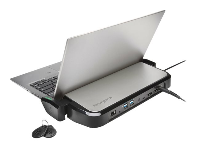 The LD4650P Single-User USB-C Dock with K-Fob Smart Lock combines Kensington's thoroughly tested universal USB-C docking technology with next generation encrypted digital laptop locking technology to deliver a game-changing 2-in-1 docking and locking solution for Windows users. Get more compatibility and productivity while reducing laptop theft and improving compliance with corporate security protocols. Secures thin and light laptops 11-15" in size, including models from Dell, HP, Lenovo and other manufacturers.