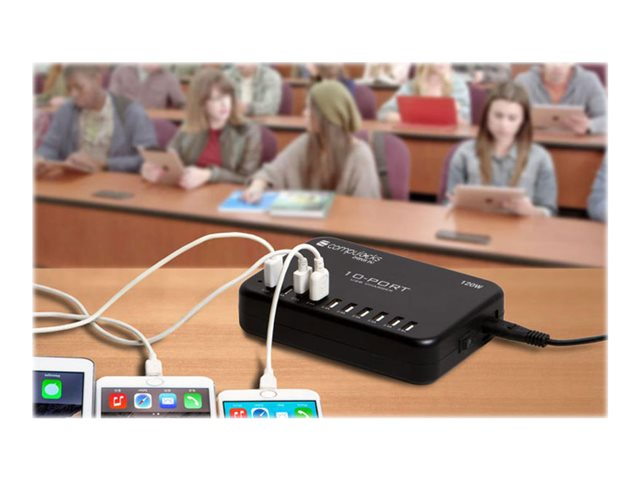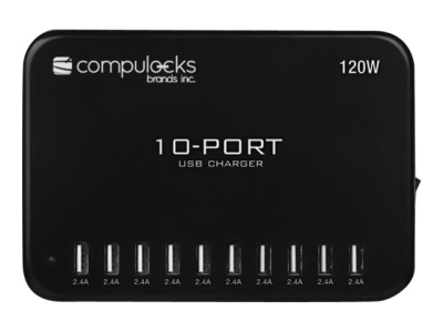 Compulocks 10-Port USB Charging Hub With EU Plug - Strömadapter - 120 Watt - 2.4 A - 10 utdatakontakter (USB) - svart